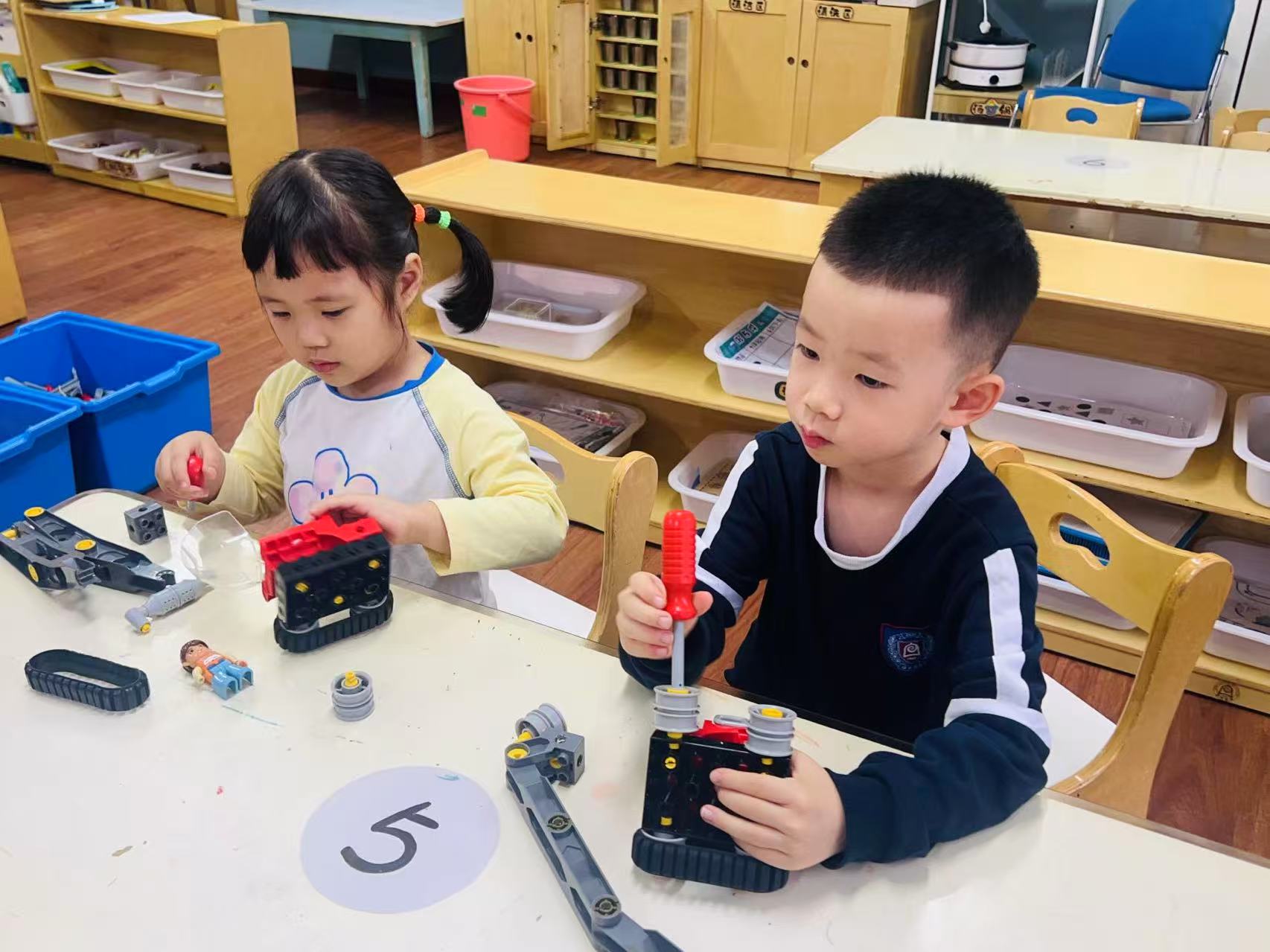 孩子们从一开始对着一堆积木思考,到现在能让钻头稳稳地转起来,你们不仅成功创造了一个小机械,更在过程中学会了观察、学会了思考,还学会了如何与小伙伴合作解决问题。