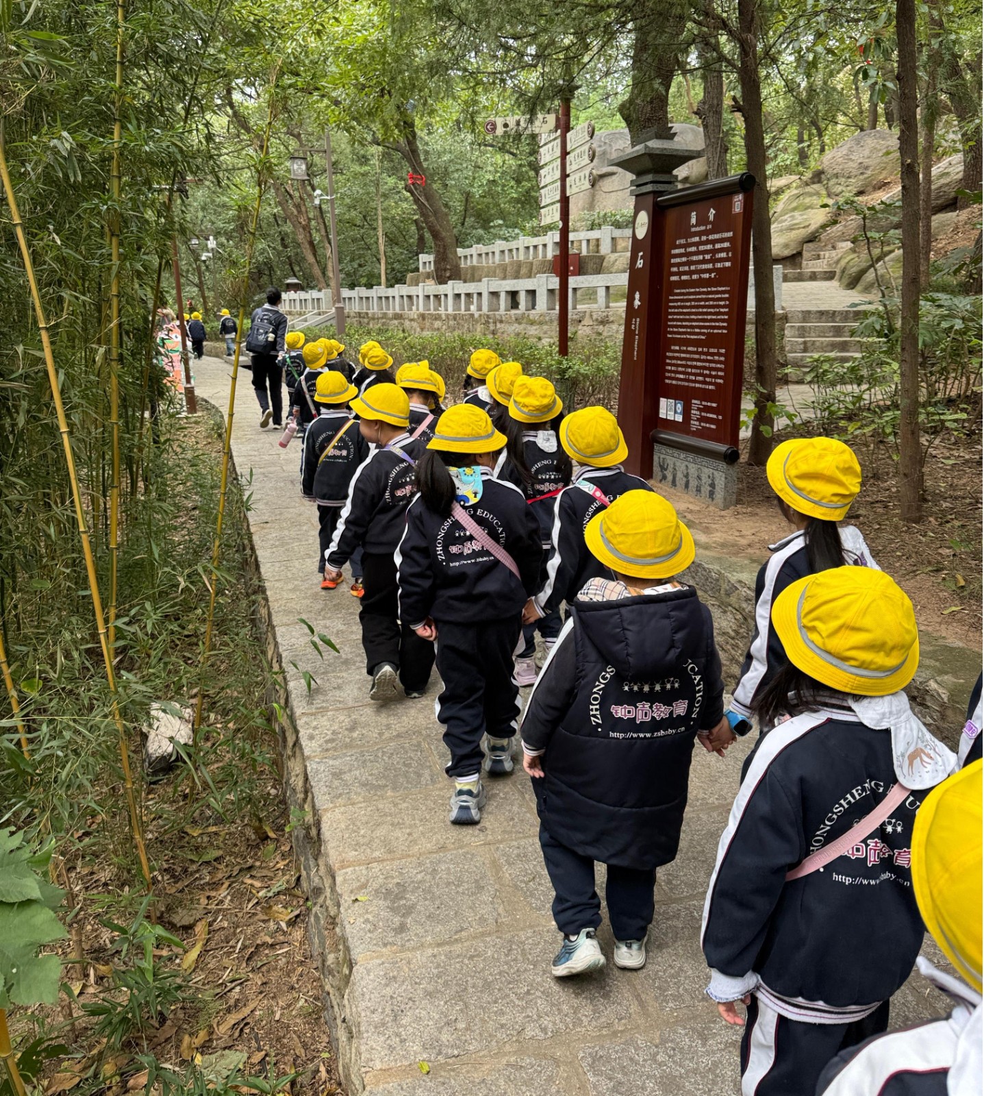 山路上的小竹林,蜿蜒的山路,是探险的第一关!孩子们手拉着手,像一队勇敢的小士兵。踩着沙沙作响的落叶,数着路边不知名的小野花。偶尔发现一只匆忙赶路的甲虫,都能引发一阵惊喜的欢呼。秋天的山风温柔地吹过,带走了额头上细细的汗珠,也带来了山林特有的清新气息。