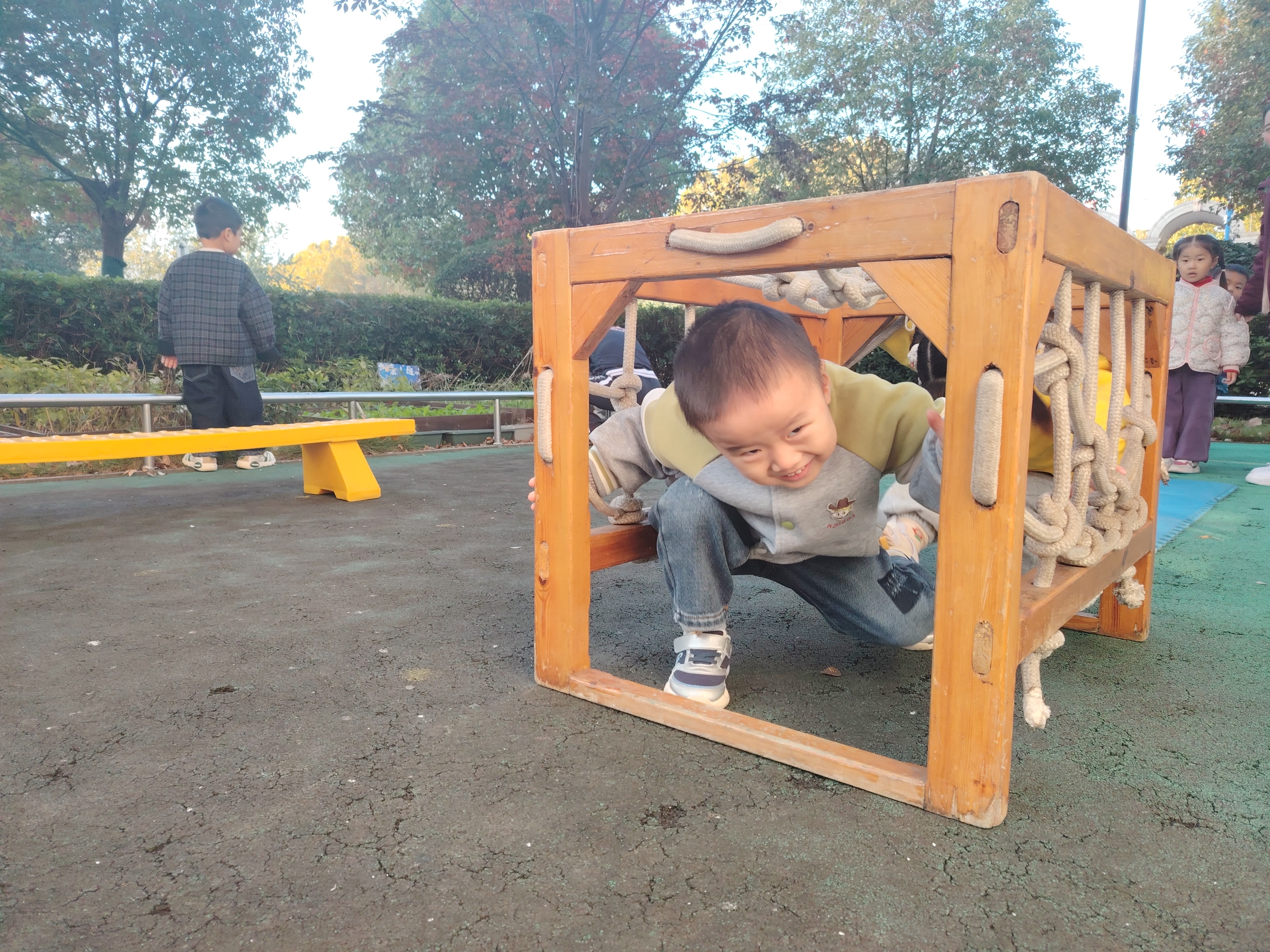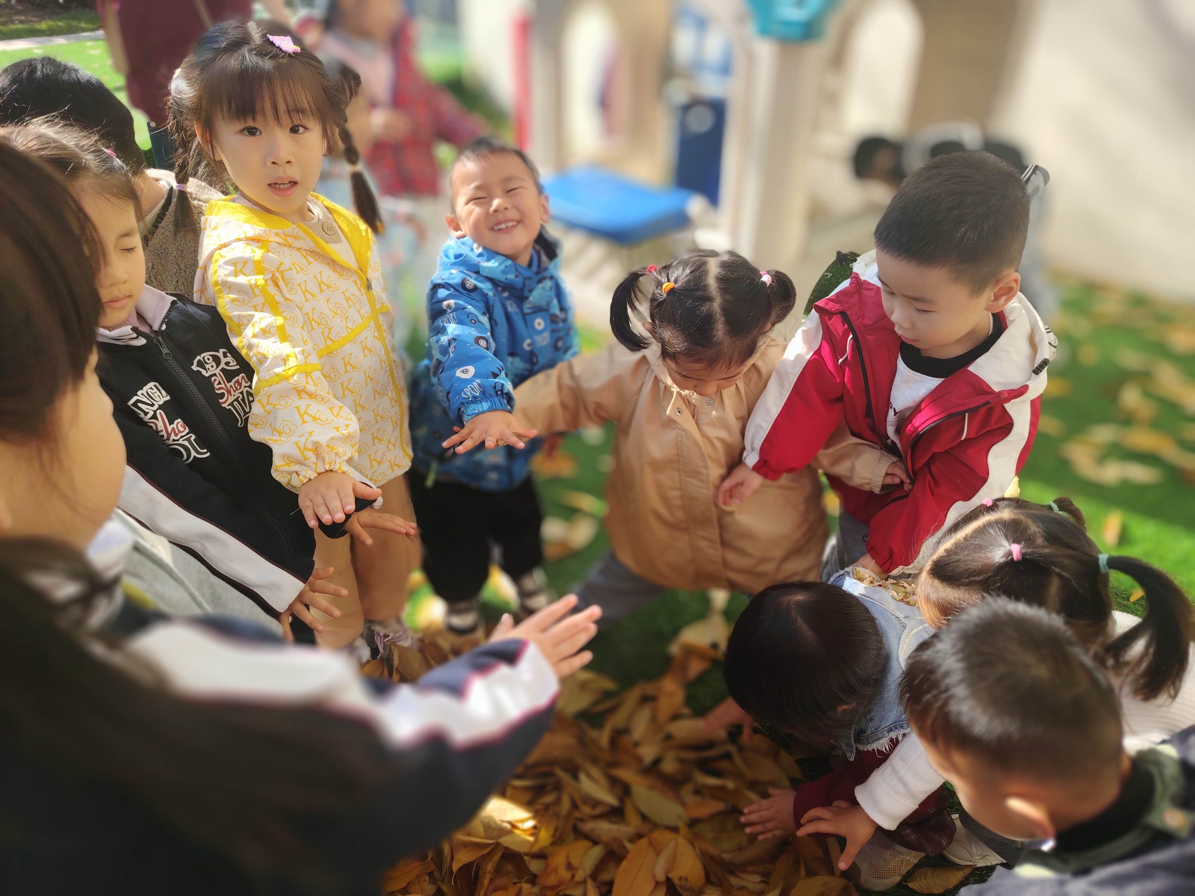 在幼儿园的小小户外天地里,秋意正浓,小班的宝贝们迎来了属于他们的欢乐时光。