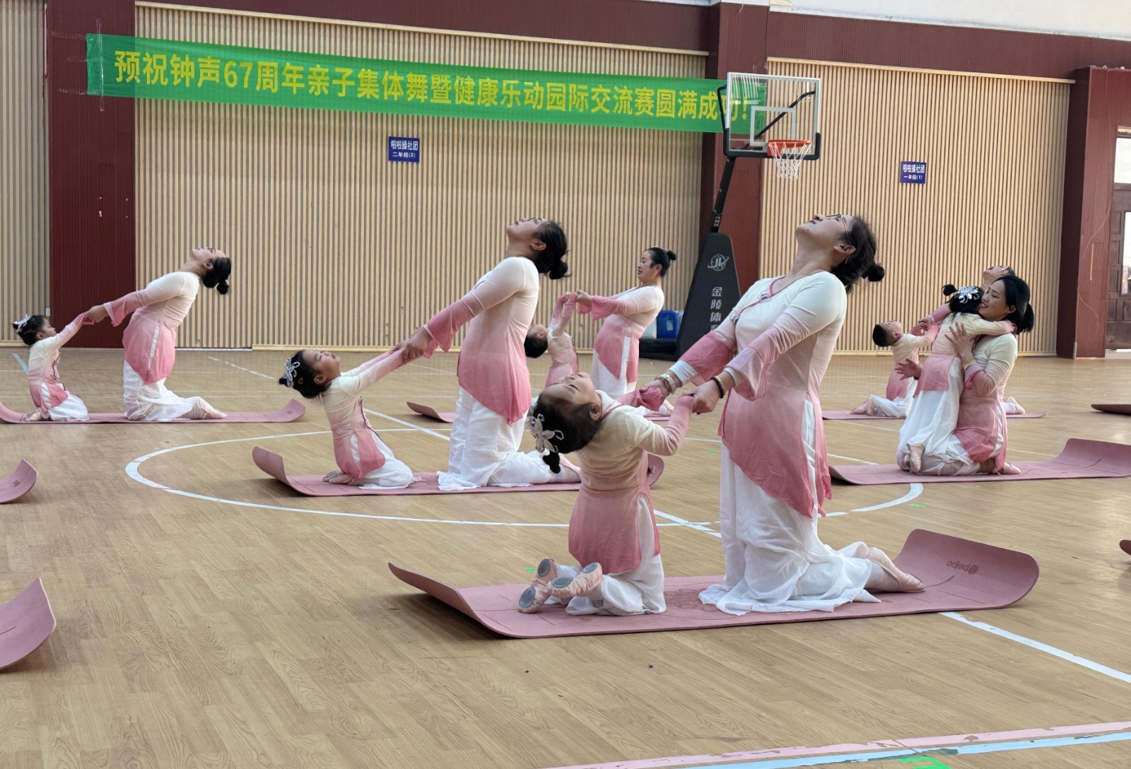 如果说动作的整齐令人惊叹,那么弥漫在整个表演中的宁静与和谐,则更让人动容。妈妈们轻柔地引导,孩子们专注地模仿,他们的呼吸在不知不觉中同步,眼神在交汇中传递着无声的鼓励。当一个孩子成功完成一个伸展,妈妈嘴角那抹藏不住的笑意,比任何奖牌都更闪耀。