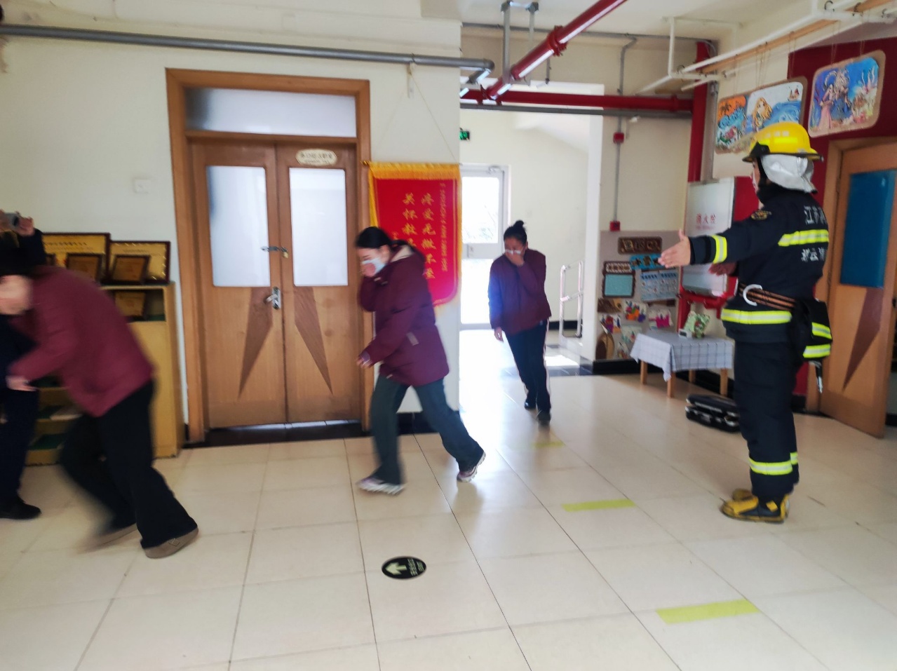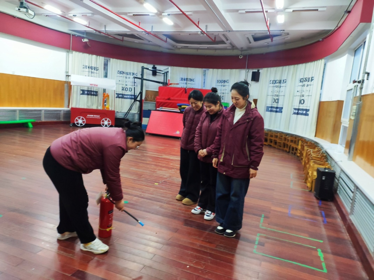 当消防警报的模拟声响起,她们迅速切换角色:从课堂上的启蒙者,变身为应急疏散的引导员,带领孩子们低姿撤离、有序集结;在消防员的专业指导下,她们反复练习灭火器的“提、拔、握、压”,熟悉消防栓的每一处细节,把安全技能刻进日常的习惯里。