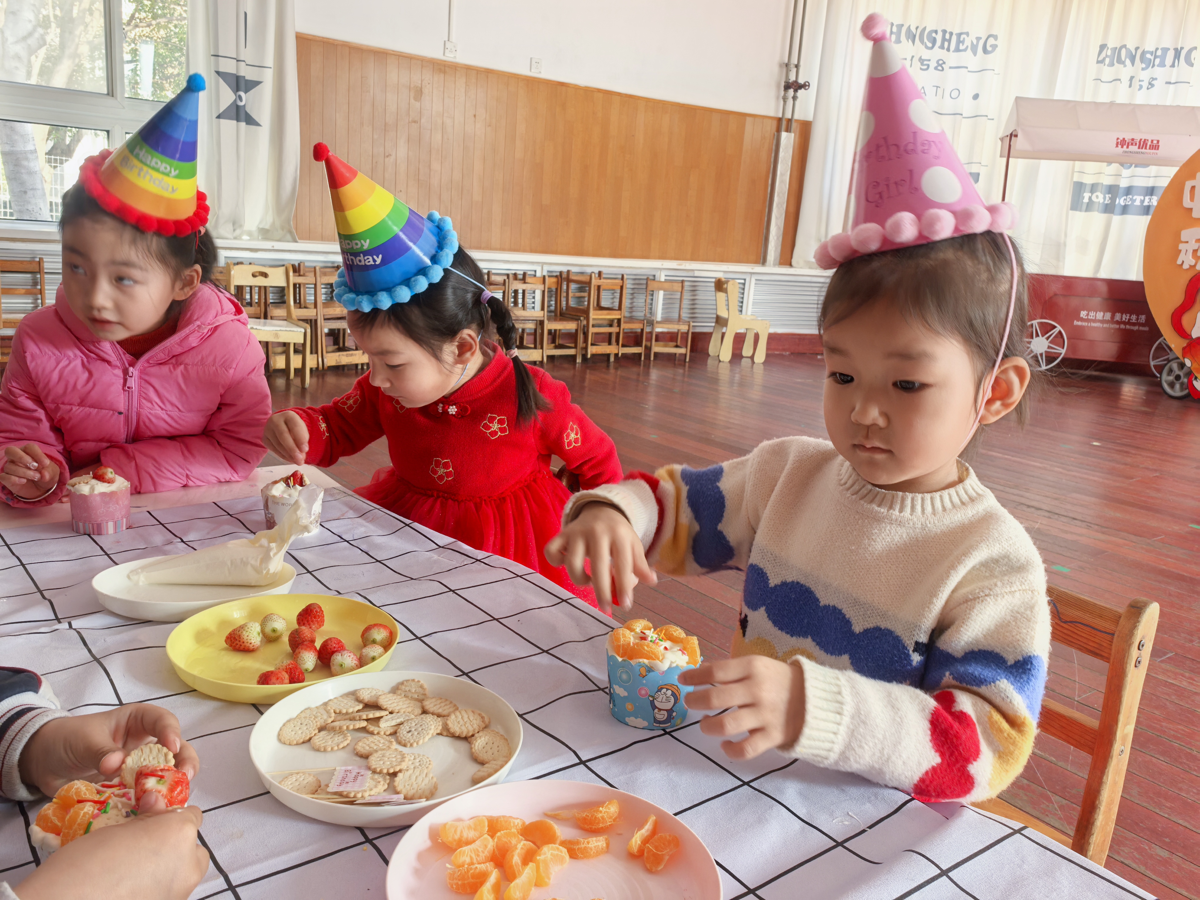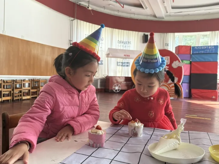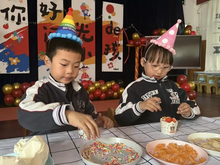 戴上五彩的生日帽,孩子们化身小小烘焙师,用奶油、水果和糖霜,亲手装点属于自己的生日蛋糕。