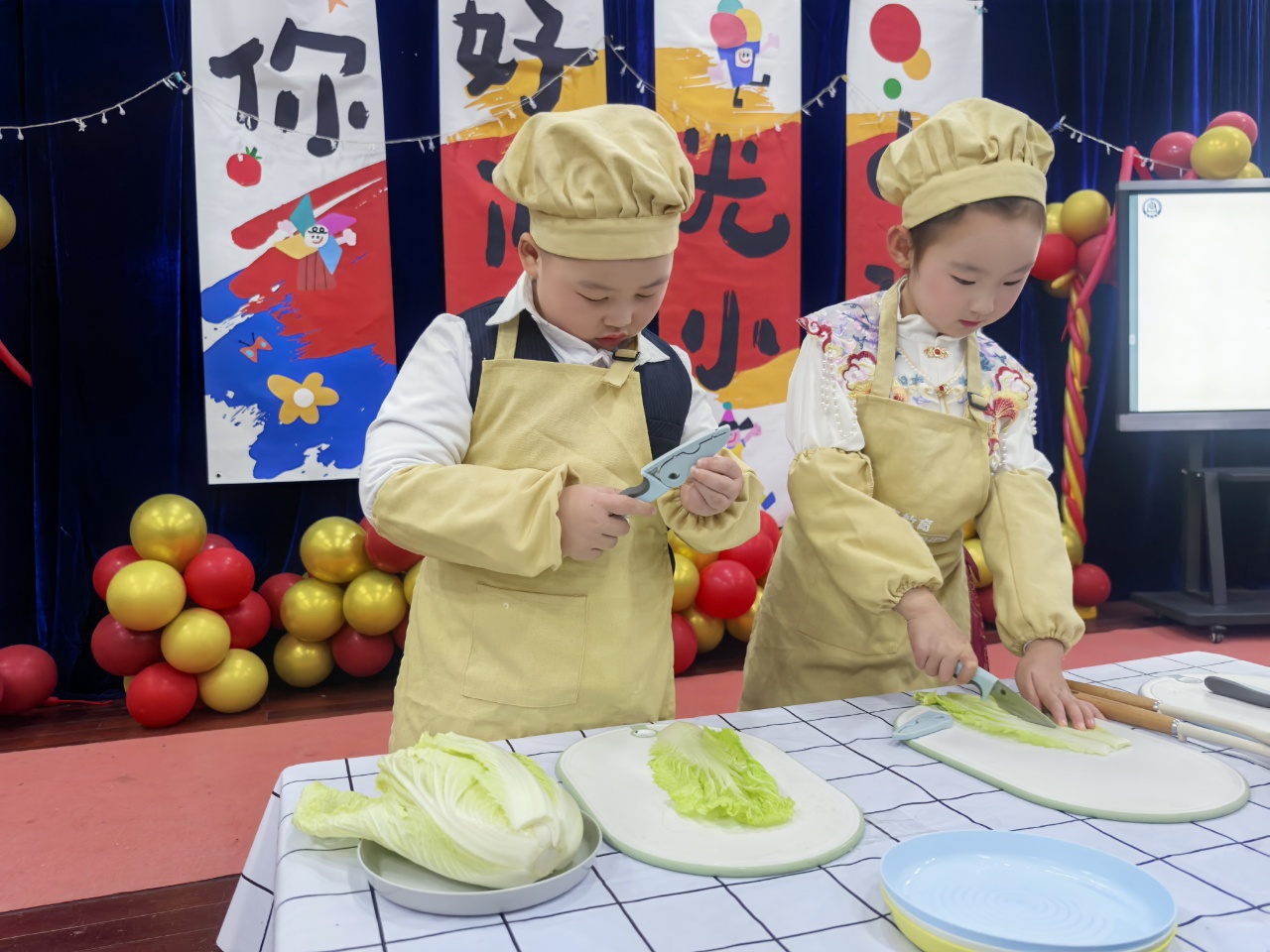 最具烟火气与幸福感的,当属温馨治愈的厨厨乐美食制作环节。孩子们化身小小美食家,动手实践、用心创作,揉、捏、切、摆,每一个动作都认真专注,在亲手制作美食的过程中,体验劳动的快乐,感受生活的美好。香气四溢的美食,是孩子们努力的成果,更是他们感恩之心的小小表达,小小的厨房间,满是成长的喜悦与亲子间的温情。