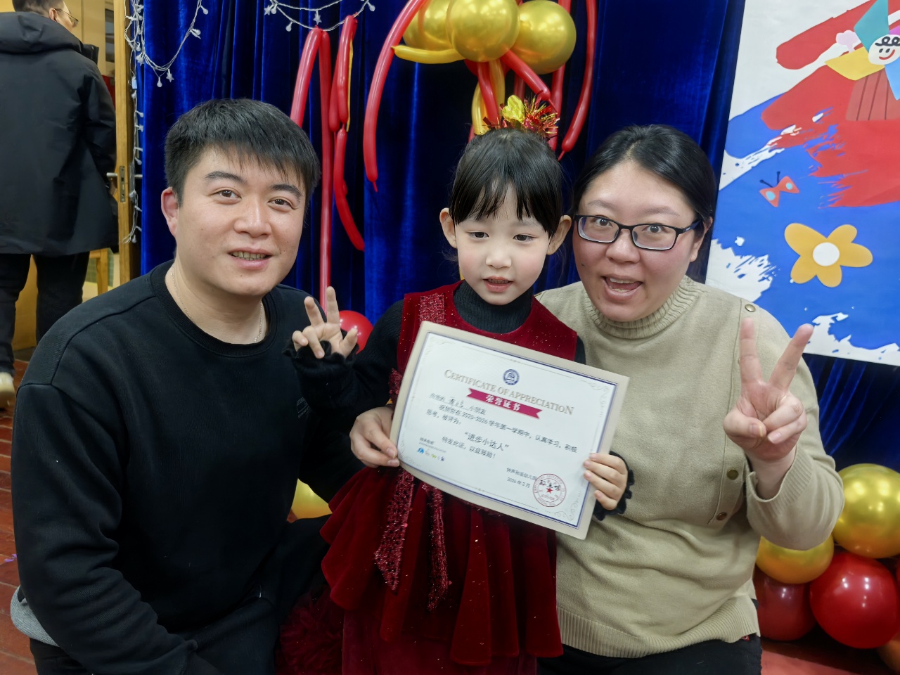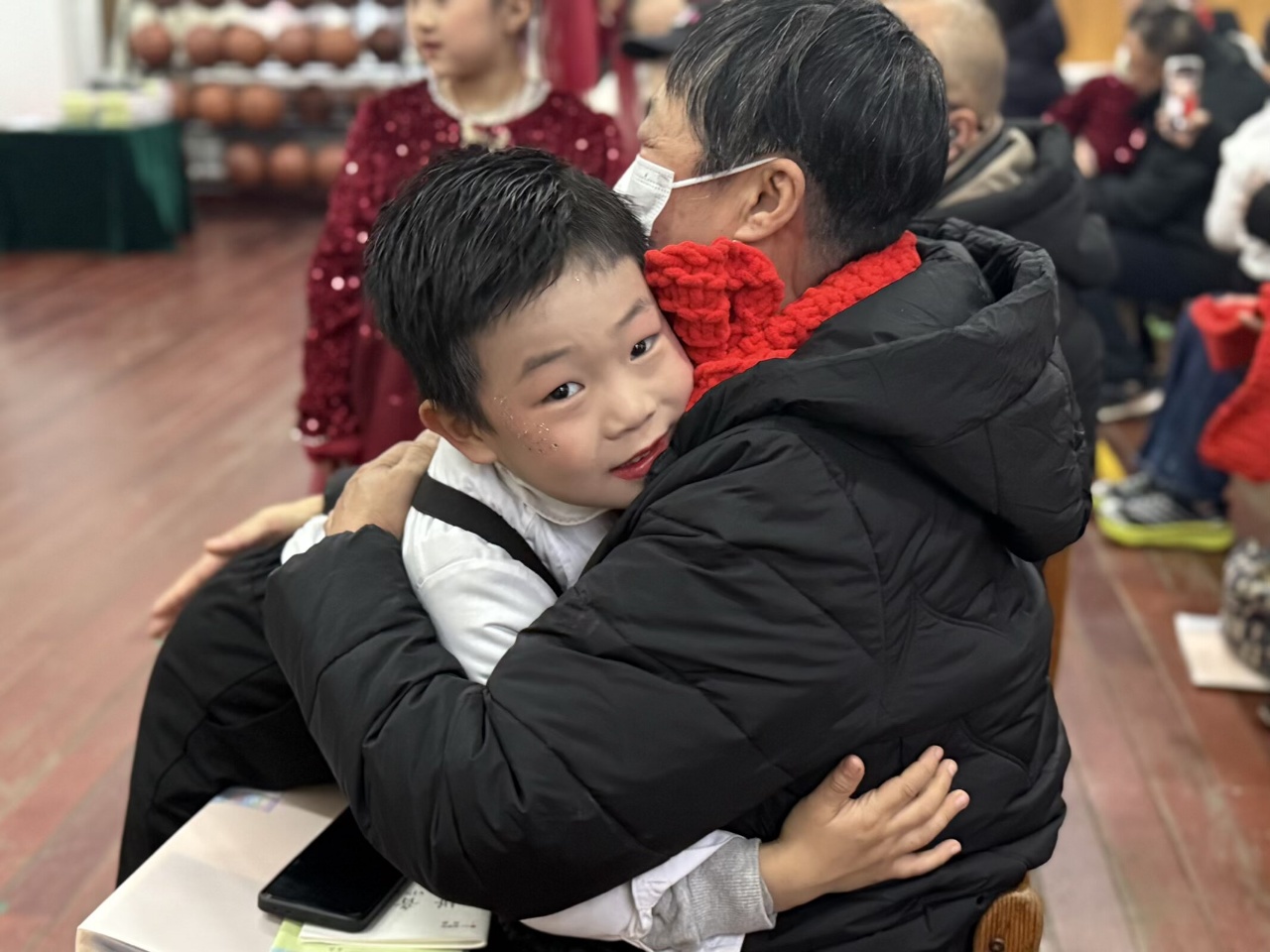 活动的最后,迎来了最暖心的荣耀与感恩时刻。幼儿园为孩子们颁发了学期成果奖状,一张张奖状承载着老师们的肯定与期许,见证着孩子们一学期的努力与进步,捧着奖状的孩子们,脸上洋溢着自豪与快乐。大班的哥哥姐姐们还拿出了亲手编织的红色围巾,小心翼翼地为家长们戴上,红红的围巾暖暖的爱,一针一线都饱含着对父母的感恩与爱意,简单的举动,却让现场满是感动与温情,成为这个冬日最温暖的画面。