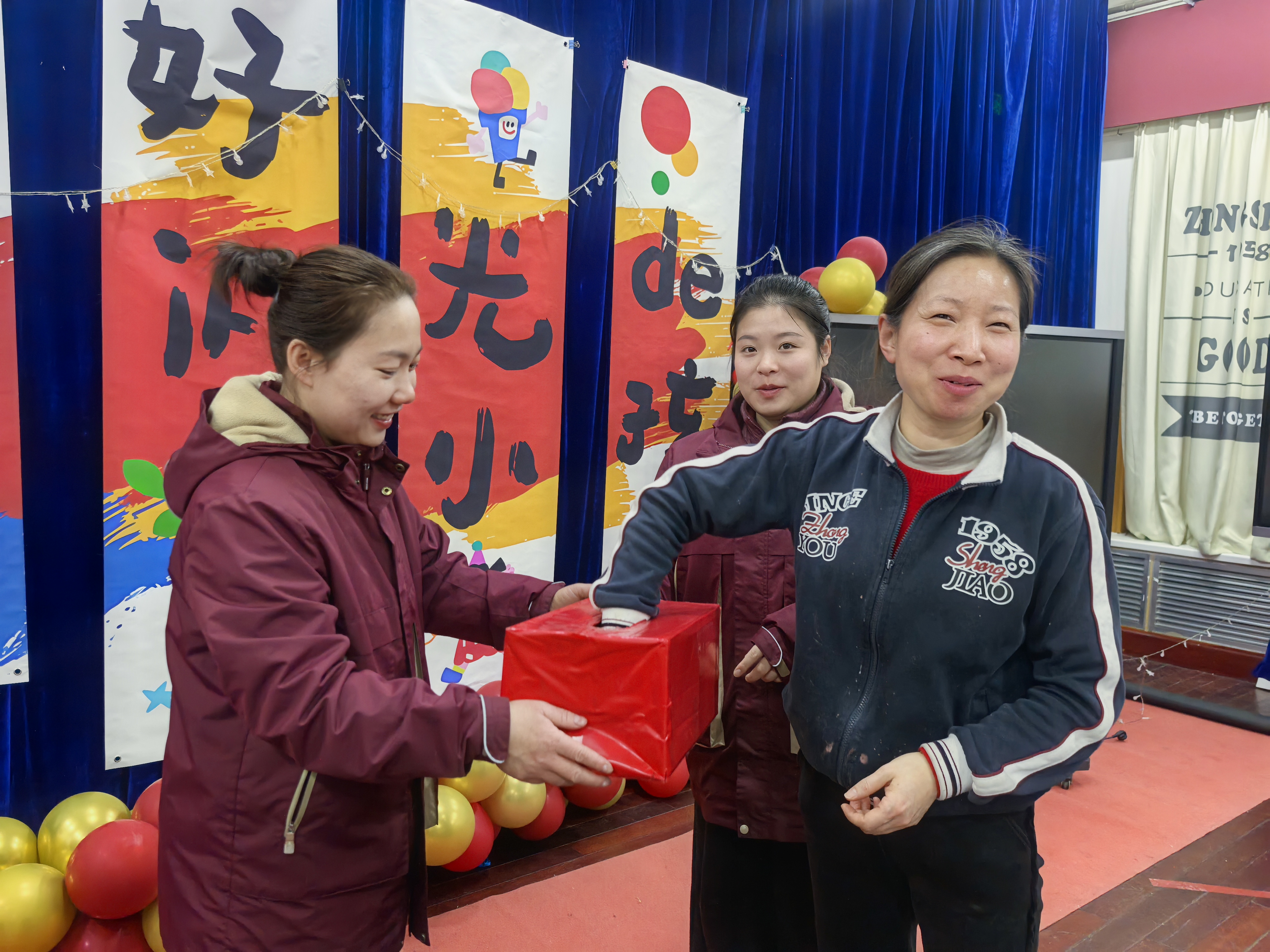 惊喜与幸运,是年会最动人的注脚。一侧的展台上,红彤彤的礼盒整齐堆叠,实用的日用品、飘香的特产、精美的伴手礼,每一份福利都藏着园所对教职工的惦念。抽奖环节更是将氛围推向高潮,红色的抽奖箱在老师们手中传递,每一次伸手,都藏着对新年的期许;每一声欢呼,都漾着收获的喜悦。这份幸运,是对过去一年付出的犒赏,更是对新一年的美好祝愿。