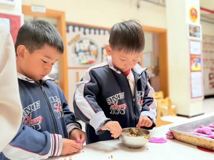 冬日的暖阳洒进园所,空气中飘着甜甜的年味。小厨师们上线啦,在欢声笑语中揉、捏、按、压,用小巧的双手制作美味,把新年的期待包进馅料里,把成长的快乐融进时光里。