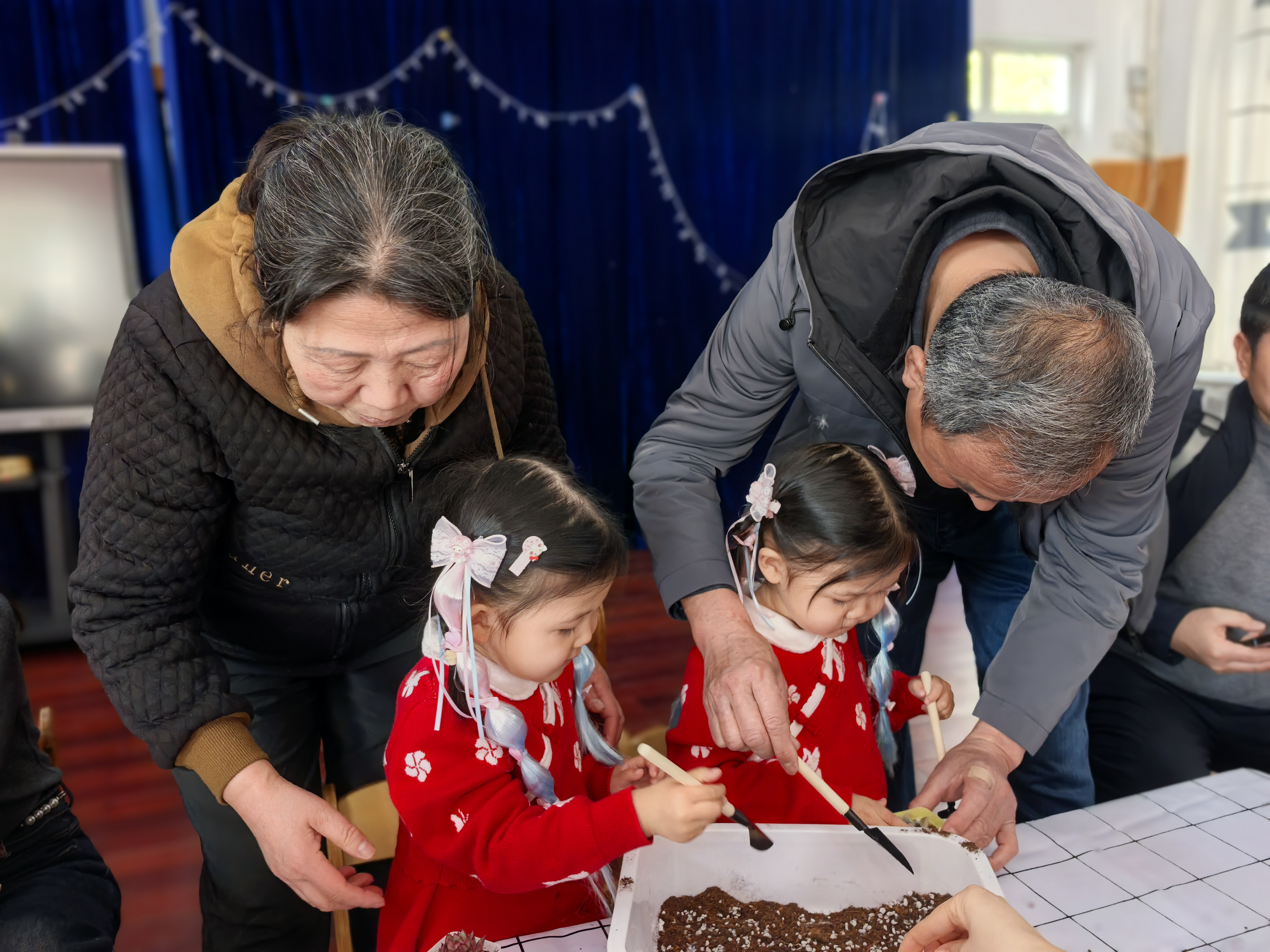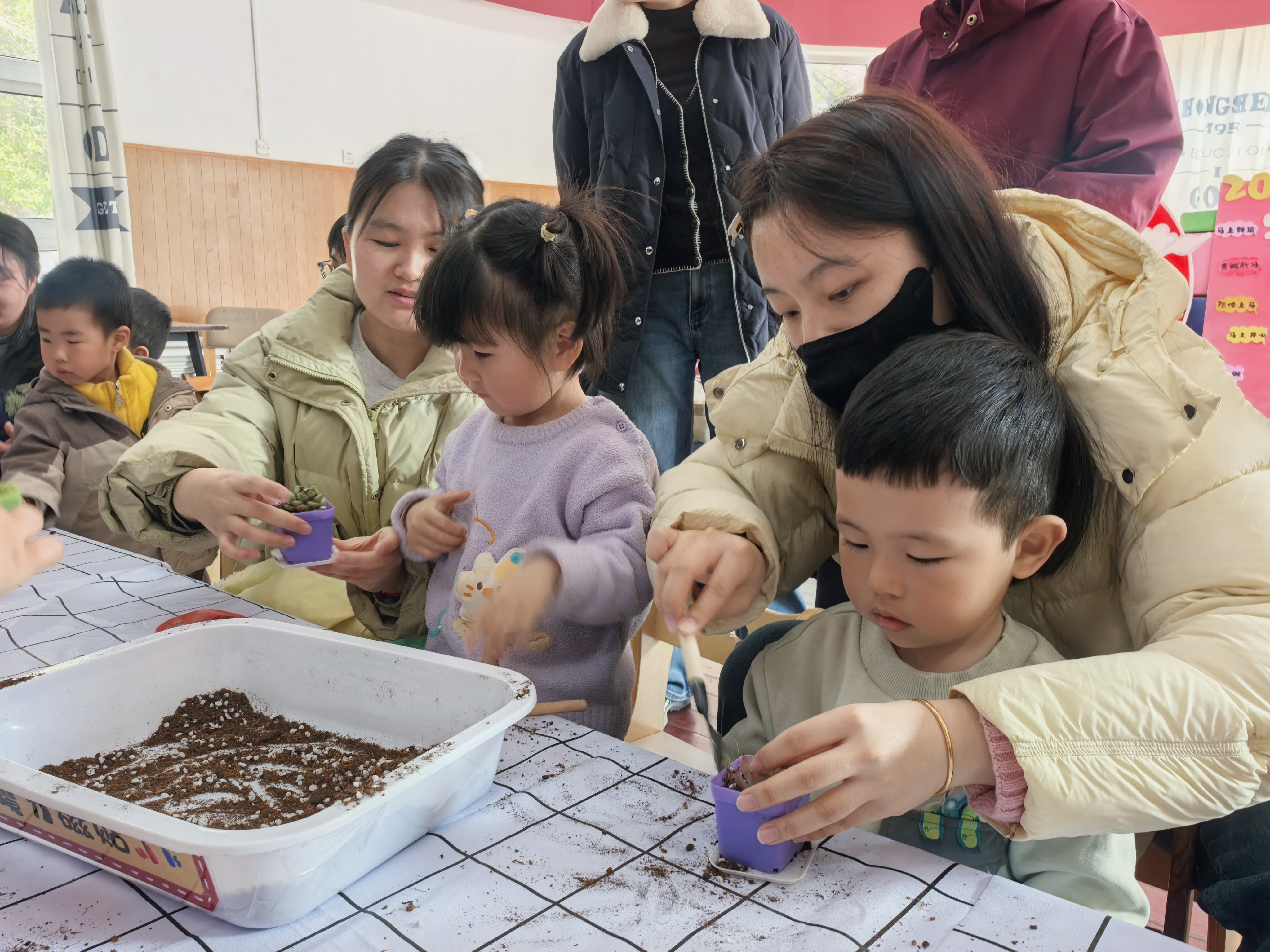 活动现场,老师先向大家介绍了多肉植物的生长习性与种植步骤,孩子们和家长们听得格外认真。随后,大家拿起小铲子,小心翼翼地将营养土填入花盆,再把可爱的多肉幼苗轻轻放进土里,最后压实土壤、整理造型。