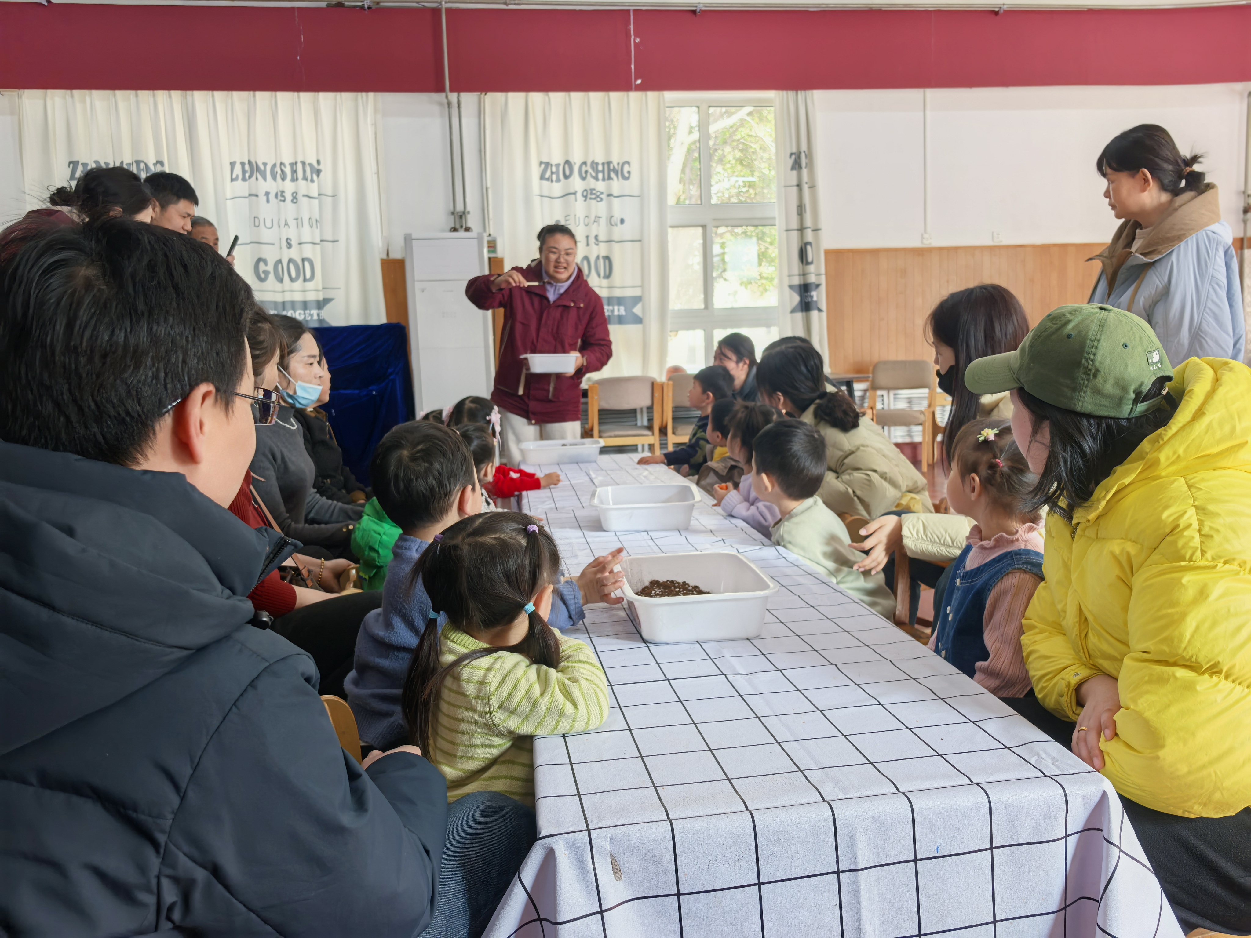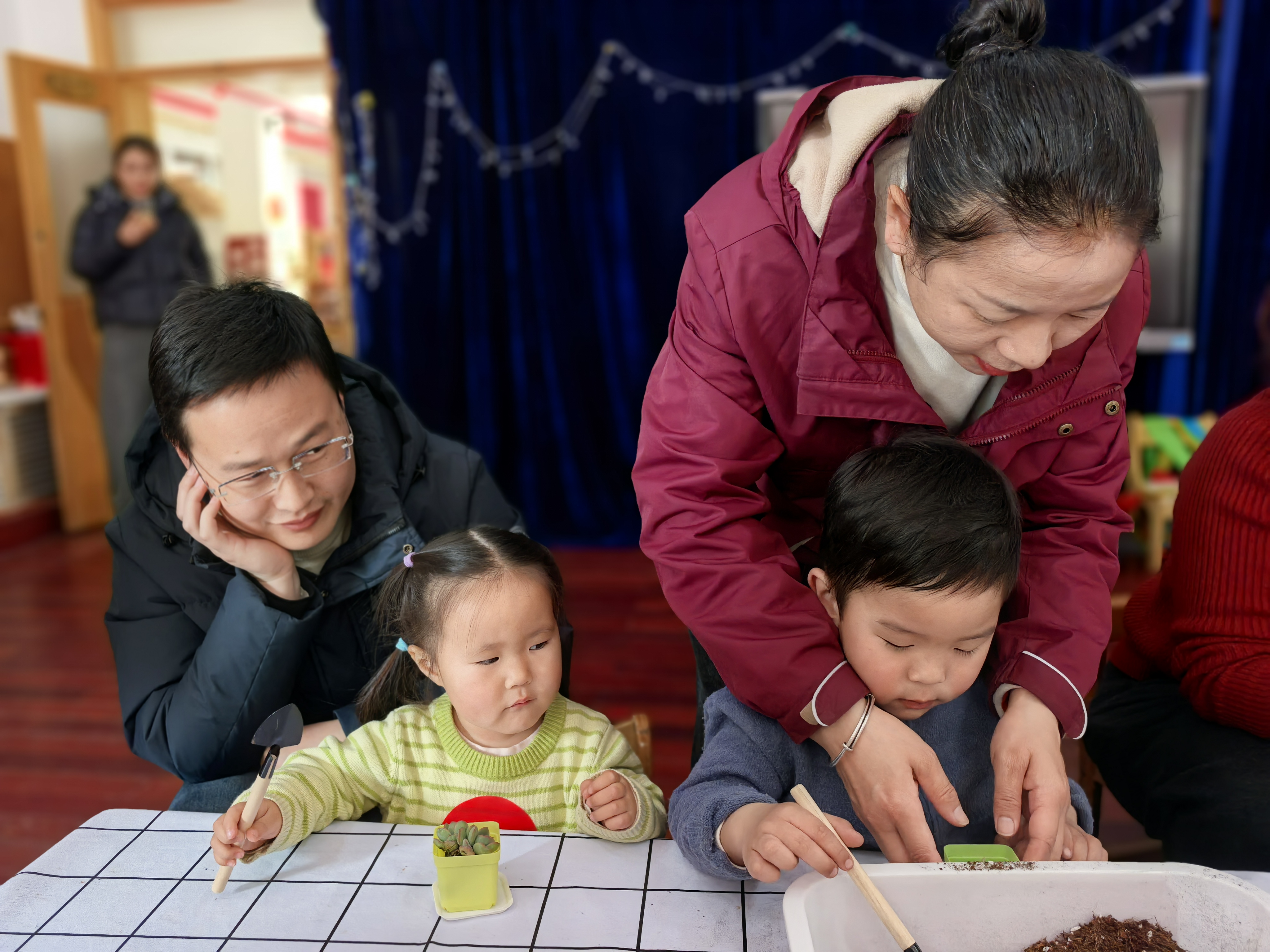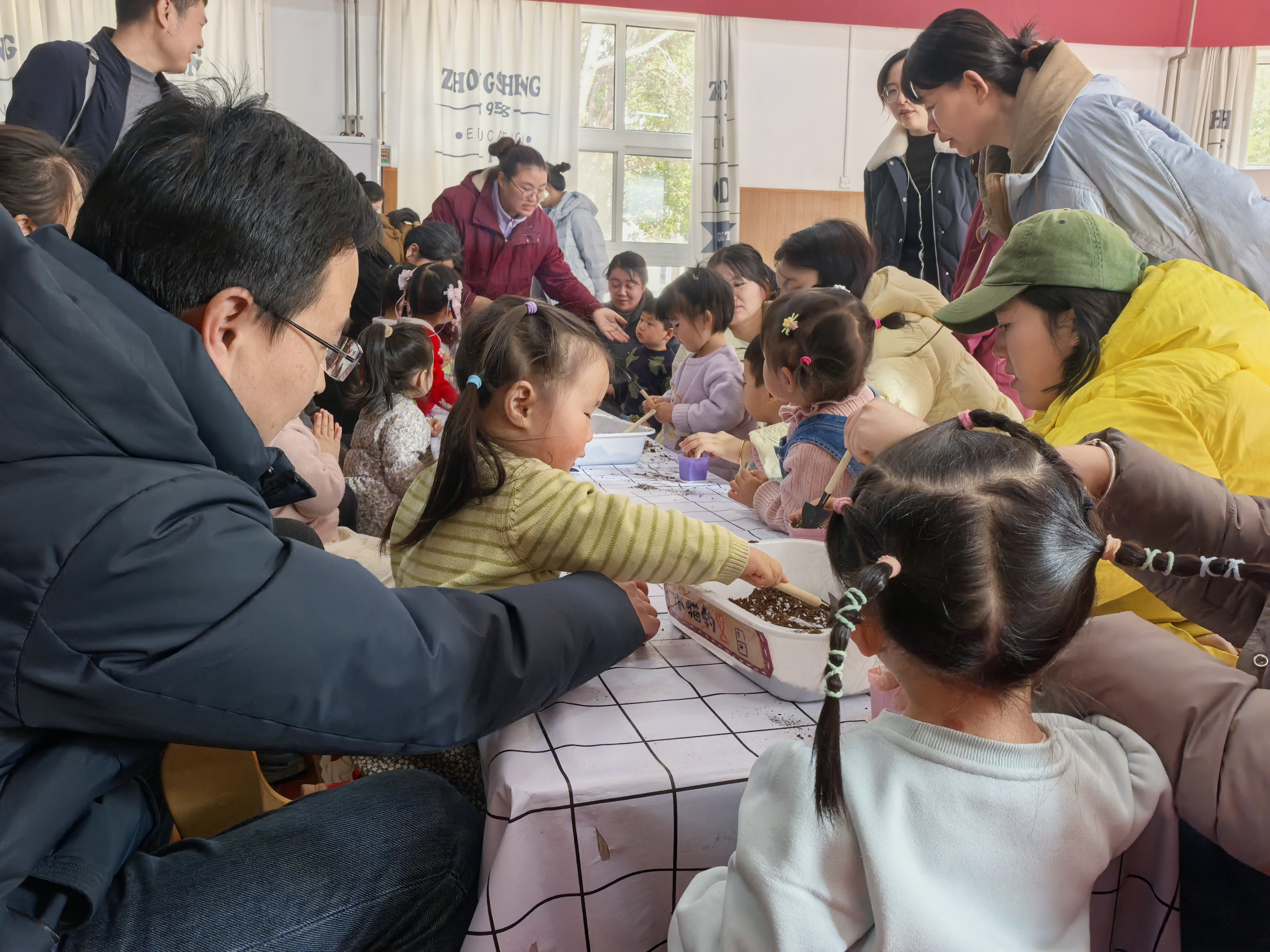 在充满泥土芬芳的氛围里,家长们耐心引导,孩子们专注探索,一双双小手在花盆间忙碌,一张张笑脸在阳光下绽放。大家相互分享种植技巧,交流育儿心得,现场洋溢着温馨与欢乐。
