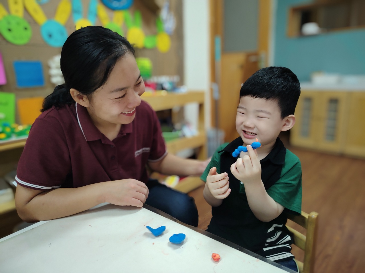 手工课上,我们的耐心是最好的“教具”。看到孩子因折纸不成而皱眉,会轻轻握住他的小手一步步示范;发现他想把黏土捏成独一无二的“小怪兽”,会笑着鼓励他大胆创作。从不追求“完美作品”,只愿用细致的辅导,帮孩子感受动手的快乐,让每一个歪歪扭扭的手工,都成为他们创造力的见证。
