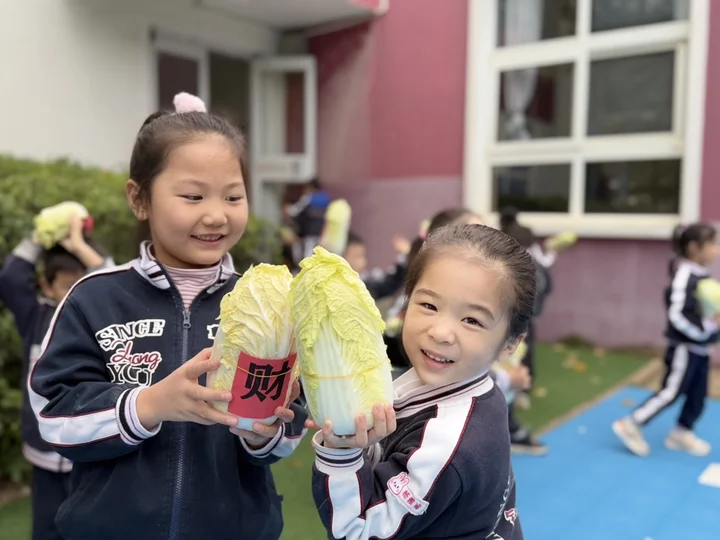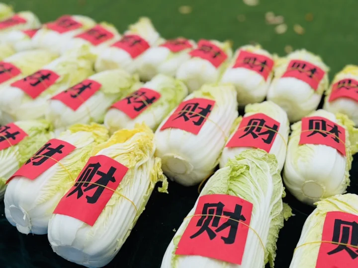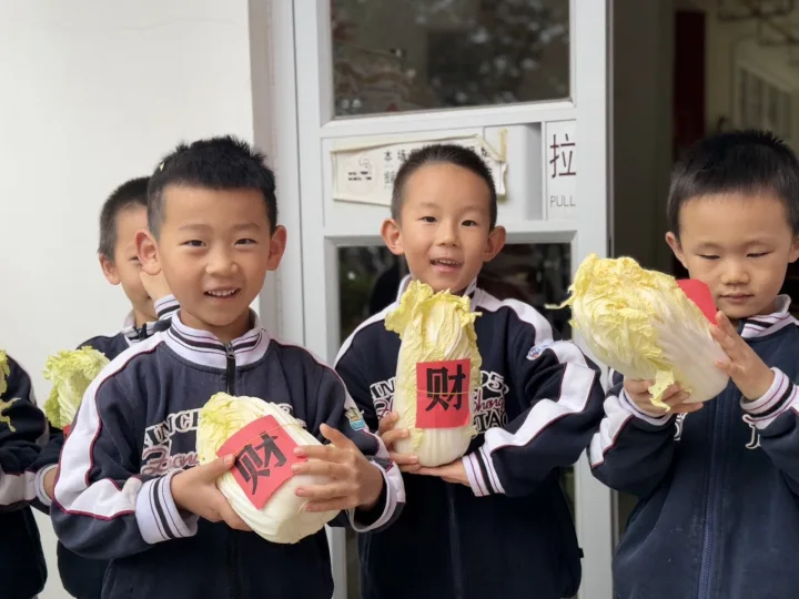 白菜”谐音“百财”,在这个丰收的季节,我们为全勤宝贝们精心准备了带着“财”字红标的大白菜,寓意着宝贝们在成长路上“财”智双收、“财”源滚滚。当然,还有身体倍儿棒、吃饭香香的祝福呀!