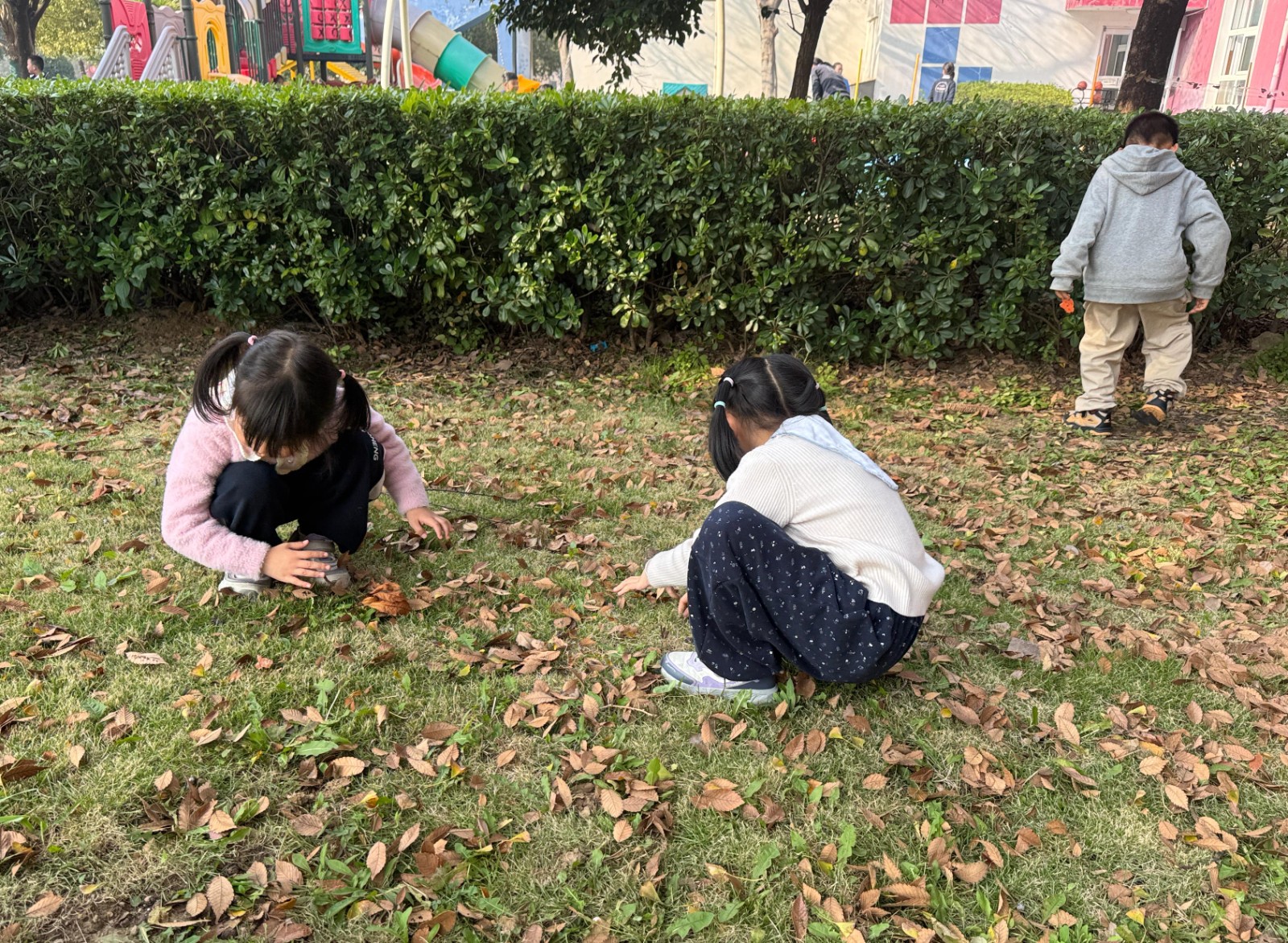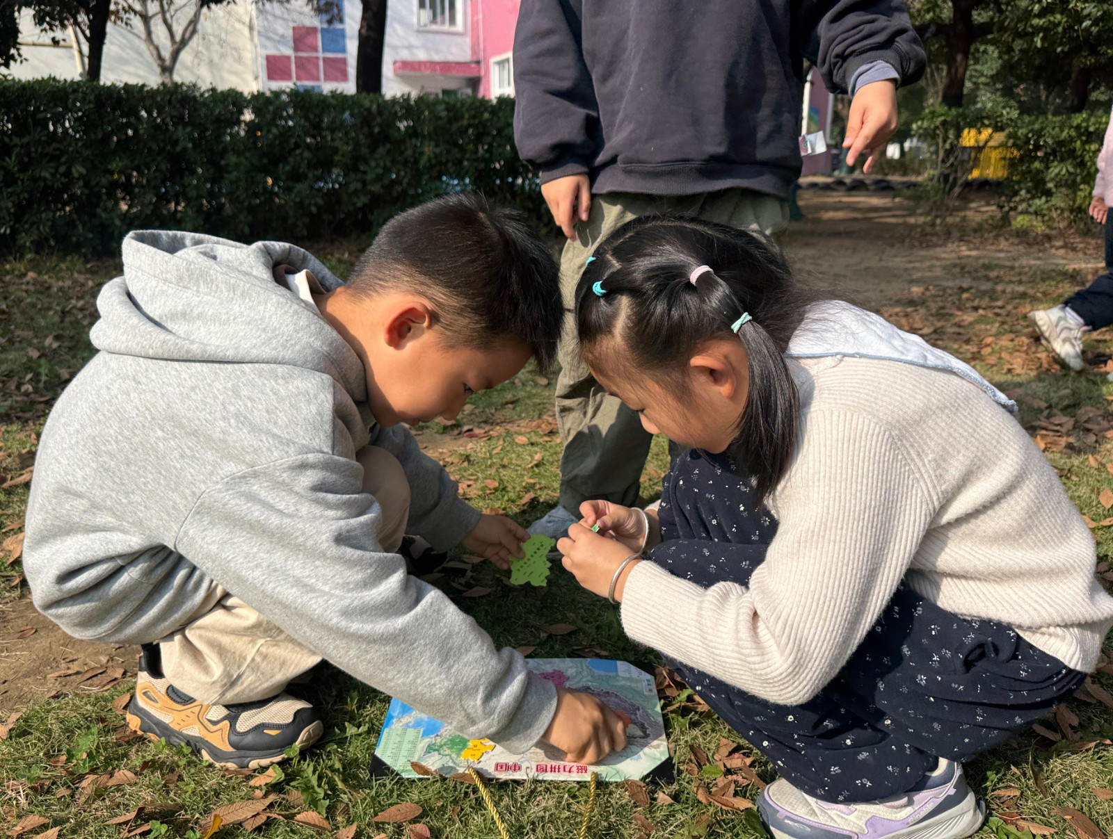 快看!这片树叶是线索!“这个树枝下面是什么?”每一个发现都让我们兴奋地跳起来!我们像机灵的小松鼠,在树根下、落叶里寻找着藏宝图的踪迹,落叶为我们跳舞,小鸟为我们歌唱。