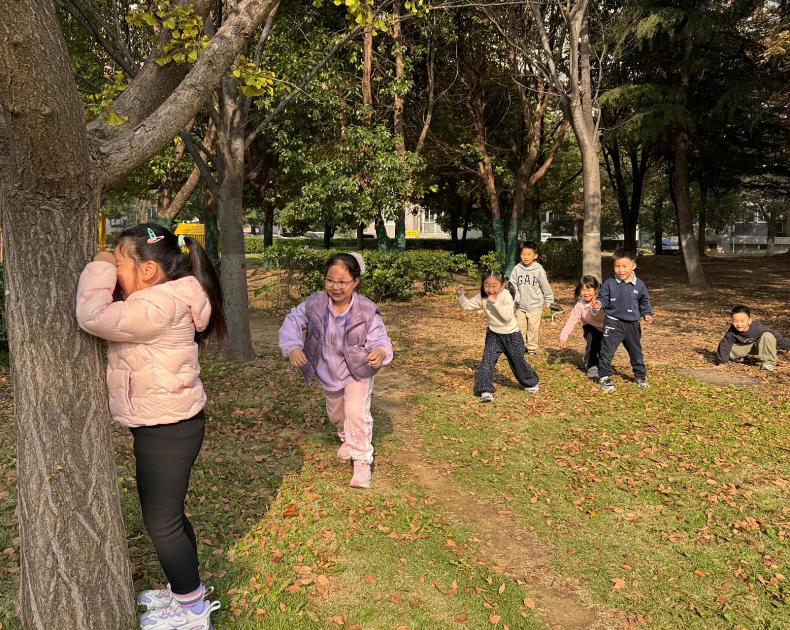 “一二三,木头人!当这声充满魔力的口令在阳光下响起,我们大班的小小冒险家们,瞬间被按下了暂停键!瞧,整片树林都变成了我们的魔法森林。
