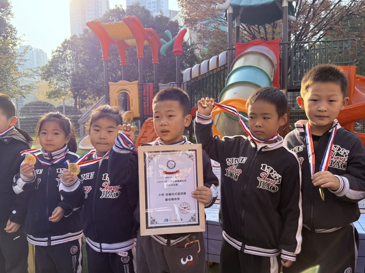 阳光正好的操场边,滑梯旁的欢呼比秋风更热烈——没错,钟声教育核电园篮球园际交流赛的颁奖仪式,在孩子们亮晶晶的眼神里,热热闹闹开场啦!